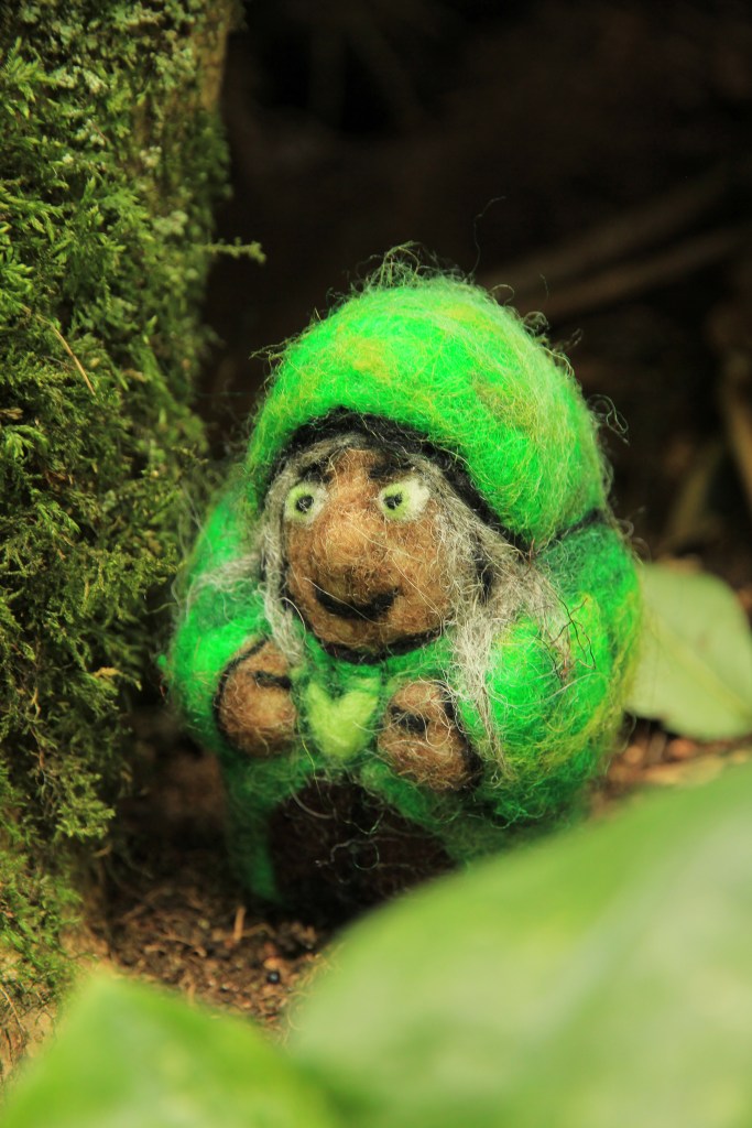 Your unique moss person wants you to take them for a wander in the woods, back to where they belong. Place them in the moss, in the crook of a tree branch or on the forest floor, capture the image, and then leave a small offering of bread to invite their kinfolk to return to their old home. Who knows, if enough moss folk can go back to their roots, moss may gather again. With their help, we can rewild the forests, and feel their magic once more…